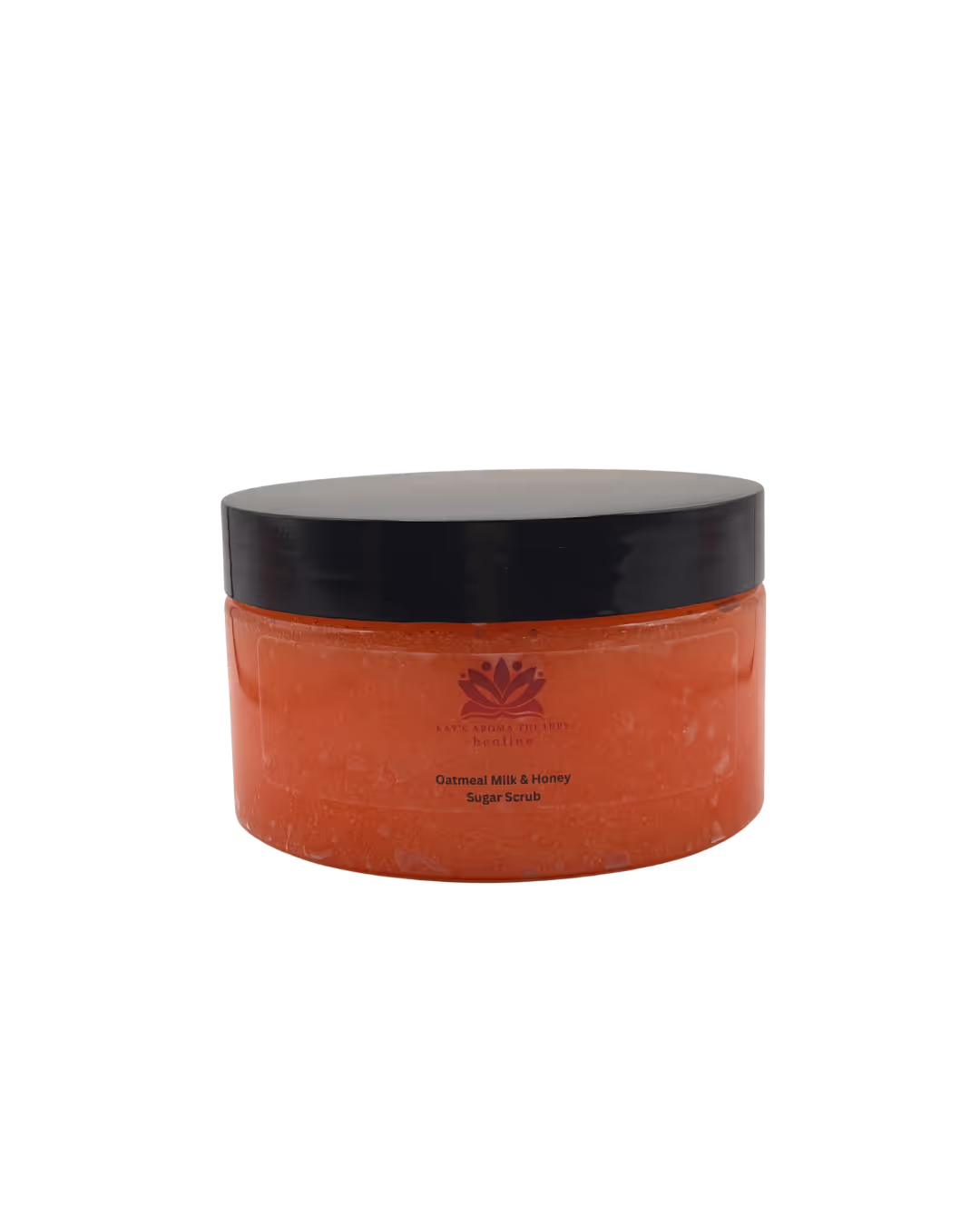 Luxurious oatmeal, milk, and honey sugar scrub that gently exfoliates while deeply nourishing the skin. Crafted to leave you feeling soft, smooth, and naturally radiant, it’s a warm, comforting treat for your daily self-care ritual.